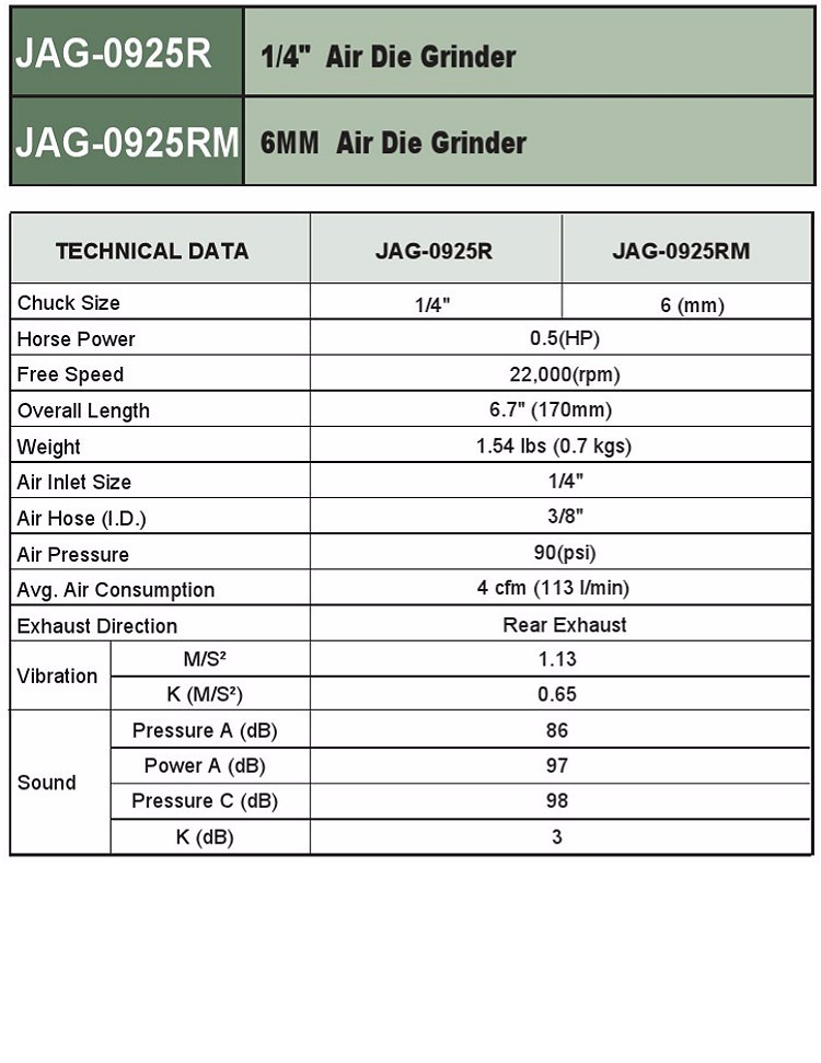 JAG0925R / 1/4" MINI AIR DIE GRINDER 22.000(rpm)