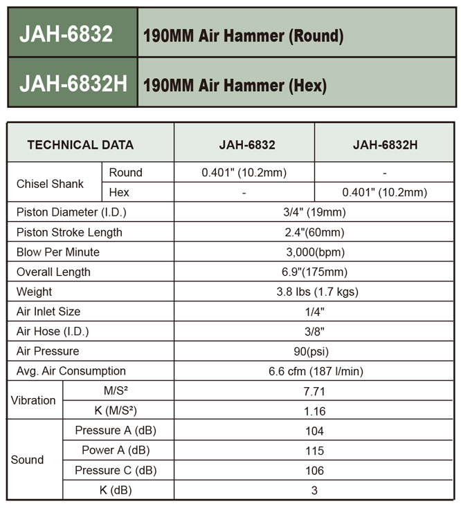 JAH6832 / 190 MM AIR HAMMER (ROUND)