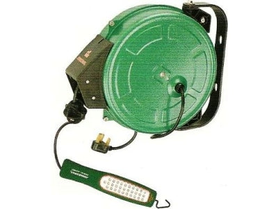 CARRETE RETRACTIL CON LAMPARA LED 120V 10 MTS