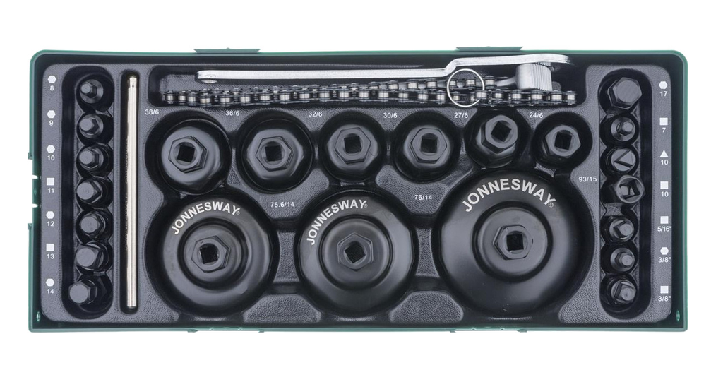 JUEGO DE COPAS Y RECTIFICADOR DE ROSCA DE TAPON DE CARTER 25 PZAS. P/CAJA DE HERRAMIENTAS