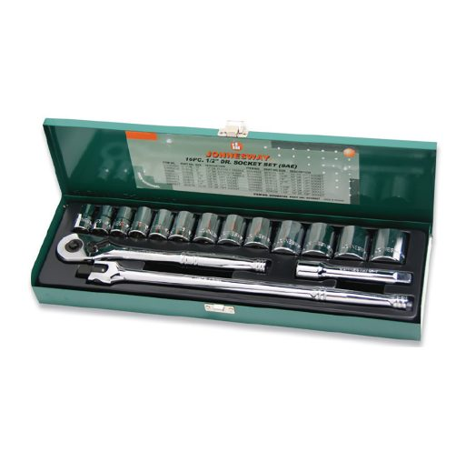 JUEGO DE 16 PCS 1/2" DRIVE SET CR-V STEEL ANSI/ASME: B107.1 SAE SIZE: 7/6",1/2", 9/16", 5/8", 11/16", 3/4", 13/16", 7/8", 15/16", 1", 1-1/16", 1-1/8", 1-1/4".