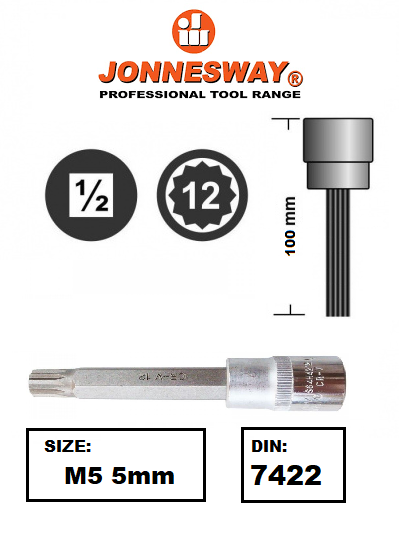 1/2" DRIVE SPLINE INSERT BIT SOCKET CR-V STEEL DIN:7422 SIZE: M5,M6,M8,M10,M12,M13,M14,M16,M18