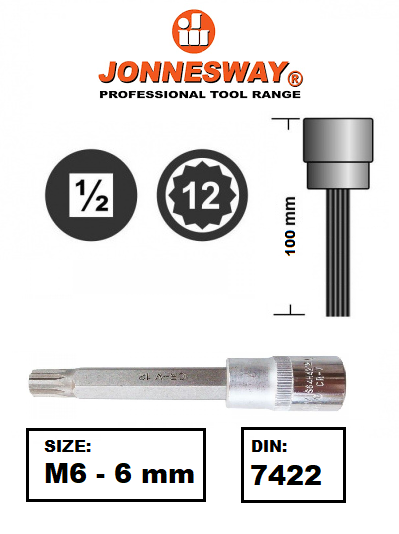 DADO LARGO SPLINE 1/2" DRIVE L: 100 MM CR-V STEEL DIN:7422