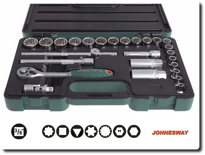S68H3126S / 26 PCS 3/8" DRIVE MULTIFIT SOCKET SET CR-V STEEL ( CR-V4) SIZE: 6MM to 24MM ( 15/16")