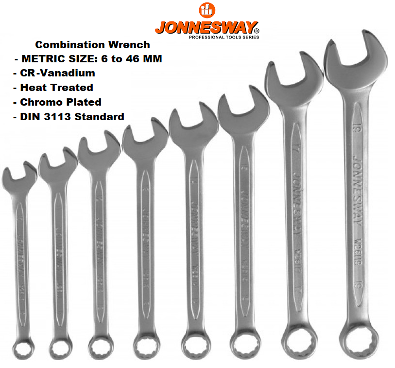 W26 / COMBINATION WRENCH CR-V STEEL DIN: 3113 METRIC SIZE: 6 to 46 MM