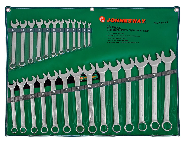 W26126S / 26 PCS COMBINATION WRENCH CR-V STEEL DIN: 3113 METRIC SIZE: 6 to 32 MM