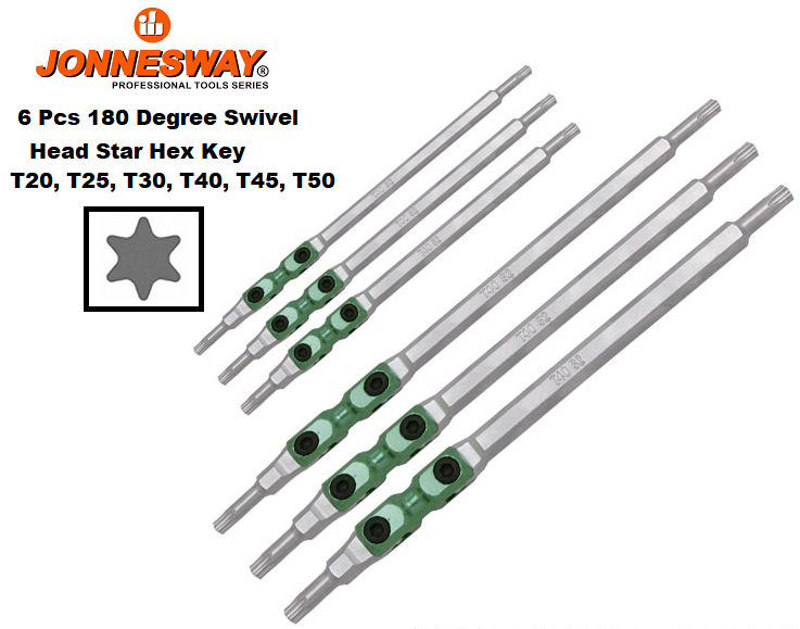 6 PCS. 180 DEGREE SWIVEL HEAD STAR HEX KEY SET T20-T50