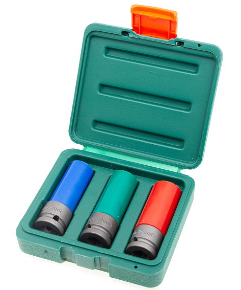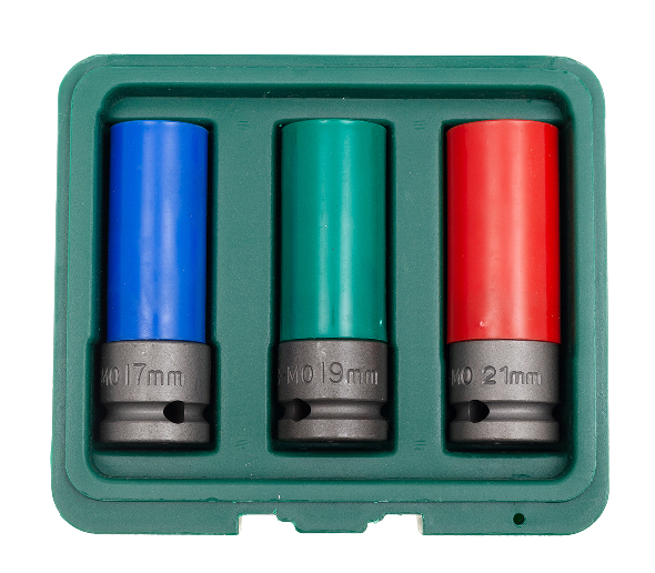 3 PCS 1/2" DRIVE WHEEL NUT DEEP IMPACT SOCKET METRIC SIZE: 17,19,21 MM
