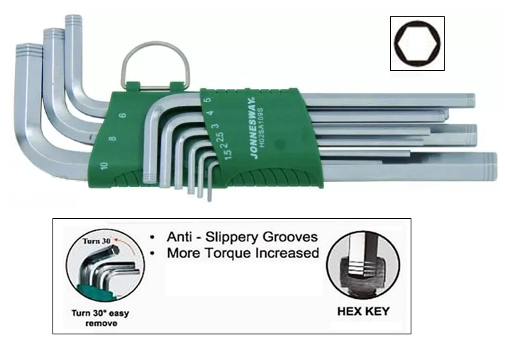 H02SA109S / 9 PCS ANTI-SLIP LONG ARM HEX KEY SET METRIC SIZE: 1.5 to 10 MM