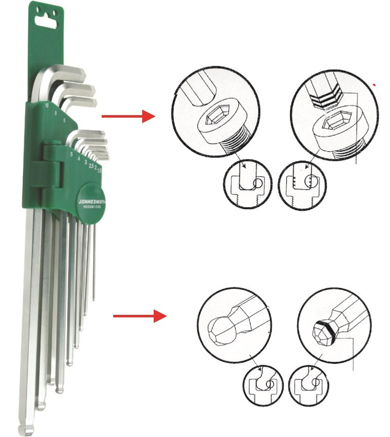 JUEGO DE LLAVES ALLEN HEXAGONAL LARGA PUNTA REDONDA 9 PZAS. 1.5, 2,2.5,3,4,5,6,8,10 MM