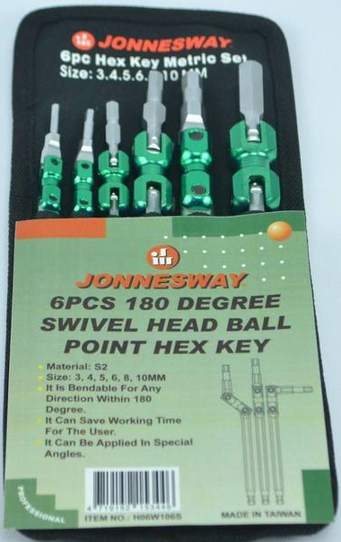 H06W106S / 6 PCS 180 DEGREE SWIVEL HEAD BALL POINT HEX KEY METRIC SIZE: 3 to 10 MM