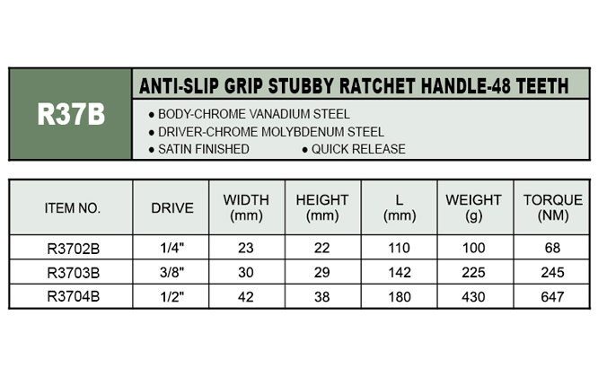 R3704B / 1/2" DR. RATCHET HANDLE, 48 TEETH