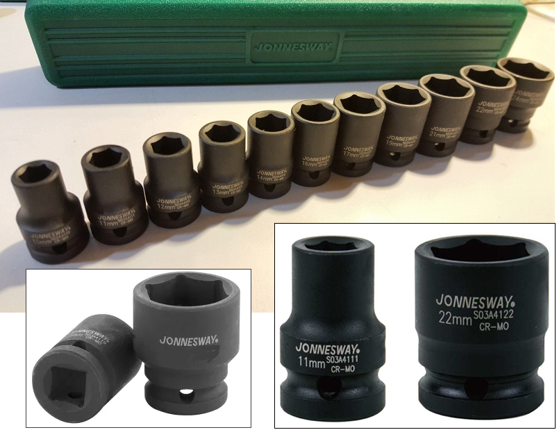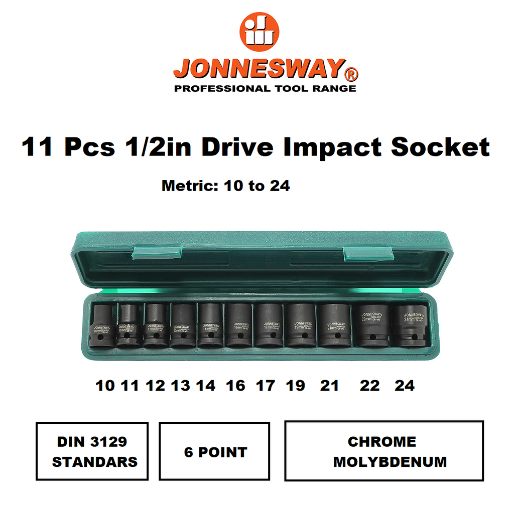 S03A4111S / 11 PCS. 1/2” DRIVE IMPACT SOCKET SET 6 PT METRIC SIZE: 10-24 MM