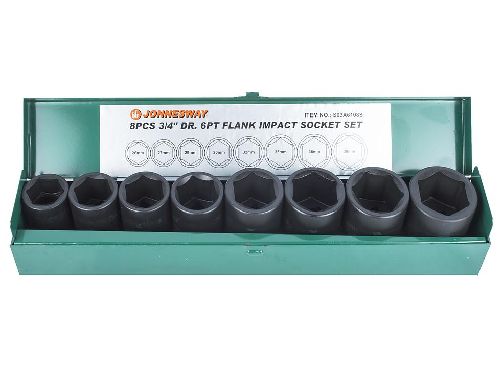 S03A6108S / 8 PCS 3/4" DRIVE 6 PT FLANK IMPACT METRIC SIZE: 26 to 38 MM