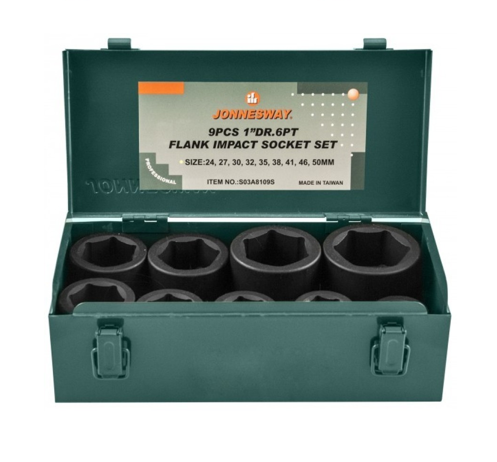 S03A8109S / 9 PCS 1" DRIVE 6 PT FLANK IMPACT SOCKET SET METRIC SIZE: 24 - 50 MM